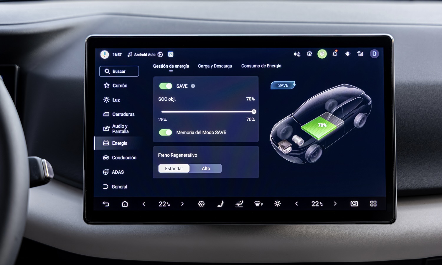 Y en el Modo HEV en paralelo, disponible a alta velocidad o cuando se demanda mucha potencia, el bloque térmico sí se conecta a las ruedas para apoyar al sistema eléctrico. En la práctica, la experiencia de conducción urbana se aproxima más a la de un eléctrico que a la de un híbrido convencional. El arranque es suave, apenas hay ruido mecánico y las vibraciones se reducen notablemente. El motor de gasolina se reserva para momentos puntuales —incorporaciones, adelantamientos o tramos prolongados de autopista—, lo que permite aprovechar mejor el potencial del sistema enchufable.