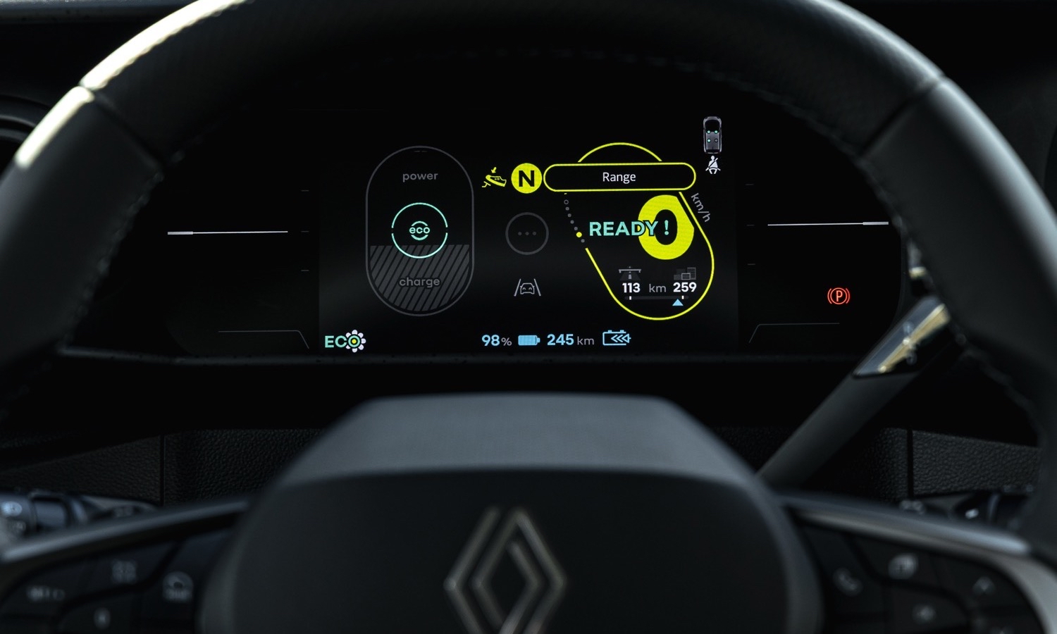 Renault también ha cuidado la aerodinámica, algo poco habitual en este tipo de modelos. Las falsas tomas de aire del capó, heredadas del diseño del Twingo original, van cerradas en el modelo de serie para mejorar el flujo de aire, y la luneta trasera con marco negro, junto con esas aletas en los pilotos, contribuyen a un SCx competitivo para un urbano. Todo suma a la hora de reducir consumo y poder montar una batería de capacidad contenida sin penalizar demasiado la autonomía.