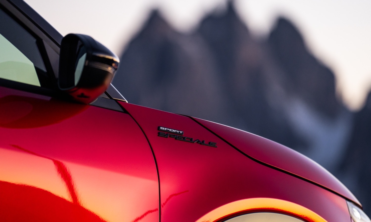 El Sport Speciale introduce un kit de carrocería en negro brillo con inserciones plateadas en faldones y paragolpes además de protecciones inferiores específicas. Las llantas de aleación «Fori» de 18 pulgadas lucen acabado bicolor Matt Miron Diamond Cut, y una insignia exclusiva en la carrocería remata la puesta en escena. Completan el conjunto las lunetas traseras oscurecidas y la opción de techo bicolor disponible con todas las pinturas de la gama, dibujando una silueta reconocible y fiel al lenguaje de diseño de Alfa Romeo.