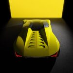 El planteamiento prioriza volumen, proporción y gesto, con menos adorno y más foco en la arquitectura general del objeto. En los guiños formales, la cúpula del habitáculo con nervaduras sugiere una conexión visual con la cubierta del motor, evocando lÃneas de Countach o Diablo. La zaga, de voladizo mÃnimo, abre paso a un gran difusor y a un apoyo trasero contundente, reforzando una postura baja y ancha.