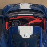 Visualmente, el nuevo Corvette Grand Sport mantiene vínculos claros con sus antecesores. Recupera la clásica combinación de carrocería en color Admiral Blue con una gran franja blanca que recorre capó, techo y parte trasera, una seña de identidad instaurada en el Grand Sport C4 de los años noventa y que, a su vez, rinde homenaje al espíritu de los C2 de competición de los sesenta.