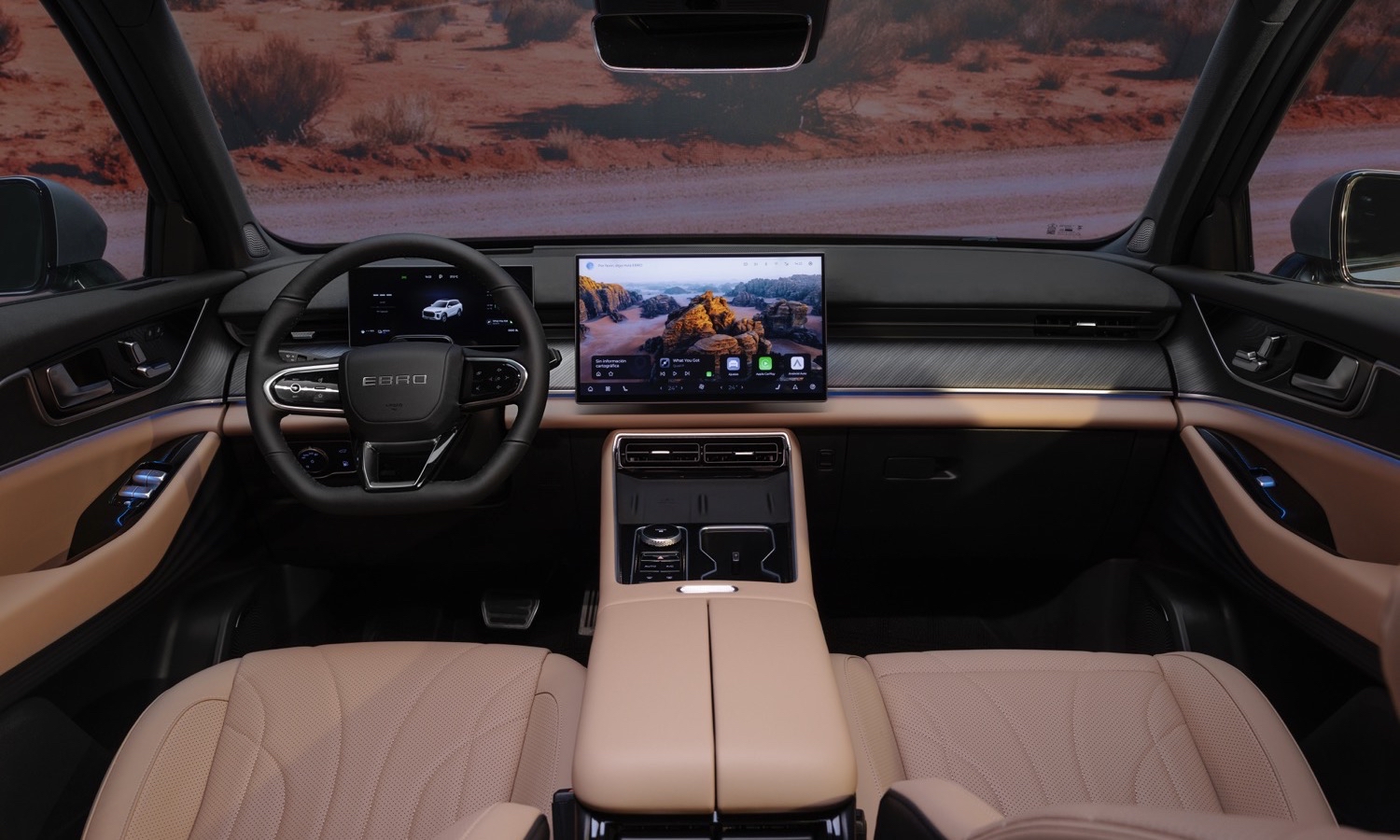 El EBRO s900 supone el desembarco del nuevo buque insignia de la marca española en el competido segmento de los SUV enchufables de gran tamaño. Concebido como un híbrido enchufable PHEV de 7 plazas con tracción total y enfoque premium, combina un planteamiento familiar muy práctico con una tecnología de propulsión orientada al uso eléctrico diario. Su autonomía en modo 100% eléctrico alcanza los 140 km según WLTP, un dato que lo sitúa entre los híbridos enchufables con mayor alcance cero emisiones del mercado europeo.