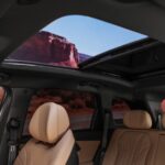 En el interior, prioriza el confort y la calidad percibida mediante materiales de tacto blando, inserciones que imitan madera y tapicería de cuero vegano con detalles cromados. El techo panorámico de 1,1 m² aporta luminosidad adicional, y la ergonomía favorece una postura de conducción natural. Tanto en la primera como en la segunda fila, dos adultos de hasta 1,90 m viajan con comodidad gracias a la buena amplitud del habitáculo.