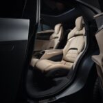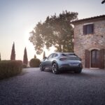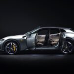 En el lateral, el aerobridge canaliza el flujo bajo el capó y genera un marcado diedro que desemboca en los potentes pasos de rueda traseros, creando la sensación de un “coupé suspendido”. Uno de los rasgos de diseño más carismáticos son las puertas traseras de apertura inversa con accionamiento eléctrico, que facilitan el acceso y, al abrirse junto a las delanteras, desvelan un interior sorprendentemente amplio sin que el coche pierda compacidad visual. El techo puede ser de fibra de carbono, reduciendo masa en la parte alta del vehículo y rebajando el centro de gravedad.