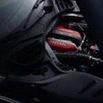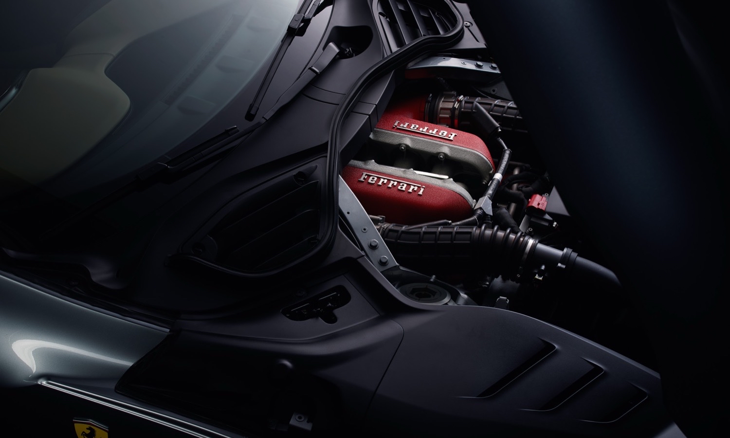 El corazón del Purosangue es un motor V12 atmosférico a 65 grados de 6.496 cm³ (familia F140IA), con 725 CV a 7.750 rpm y 716 Nm a 6.250 rpm. Entrega el 80% del par a solo 2.100 rpm, lo que asegura una respuesta poderosa desde bajas vueltas sin perder el crescendo lineal característico de los V12 de aspiración natural. Dispone de inyección directa a 350 bar mediante dos bombas de alta presión y un sistema de encendido con control iónico que optimiza el avance y la calidad de combustión. La relación de compresión es muy elevada (13,6:1) y el corte de inyección se sitúa en torno a 8.250 rpm.