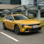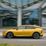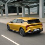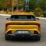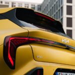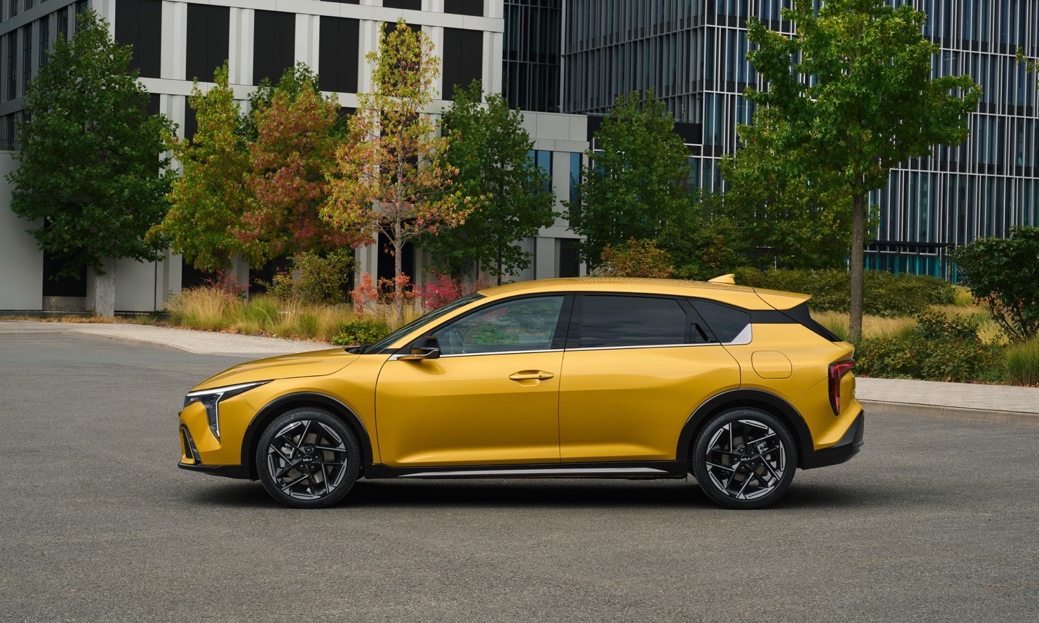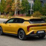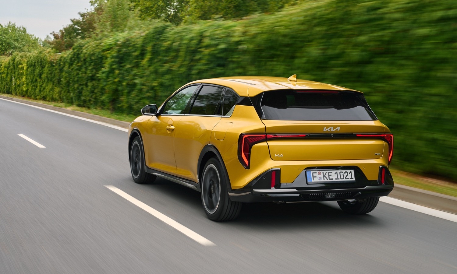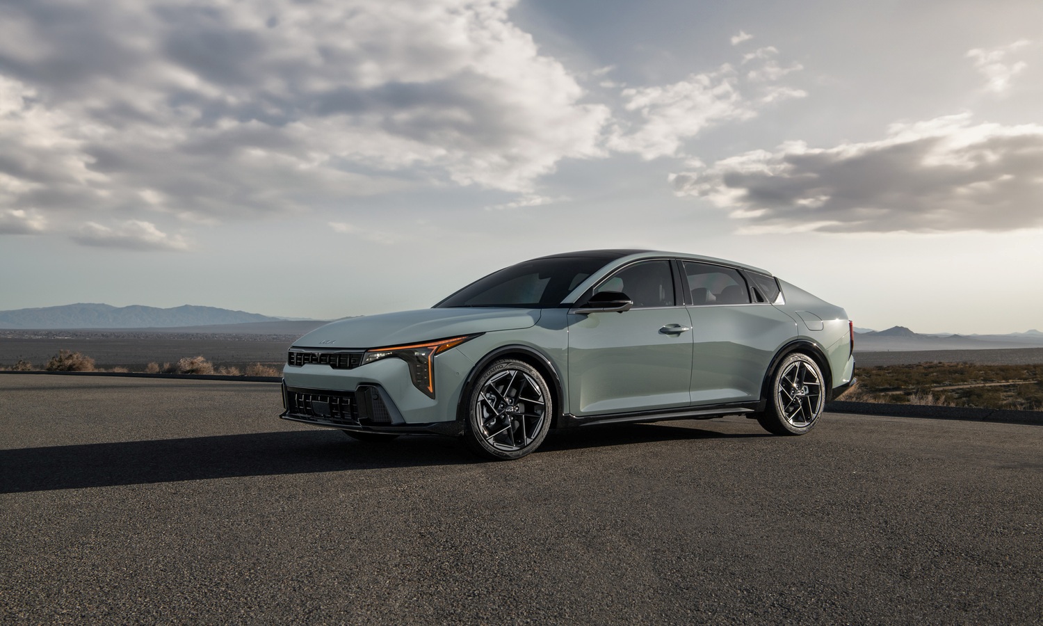 El Kia K4 presenta una silueta poderosa y limpia que combina volúmenes horizontales y verticales para lograr una imagen actual y tecnológica. El frontal destaca por las luces diurnas “mapa estelar” y los faros LED tipo cubo, mientras que en el perfil incorpora un techo de caída suave y tiradores traseros integrados para. El característico pilar C refuerza su identidad visual y aporta dinamismo al conjunto sin perder equilibrio estético.
