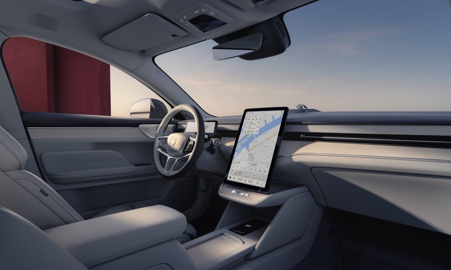 El interior sigue una filosofía minimalista, pero sin renunciar al lujo. El habitáculo está revestido con materiales reciclados y sostenibles, y se aprecia un elevado nivel de calidad en los acabados. El salpicadero incorpora una pantalla vertical de 14,5 pulgadas con superficie antirreflejos, compatible con Apple CarPlay inalámbrico y actualizaciones Over the Air (OTA). El maletero varía desde 424 litros hasta 733 litros, dependiendo de la configuración de los asientos traseros, y cuenta con un espacio adicional de 22 litros en el compartimento delantero