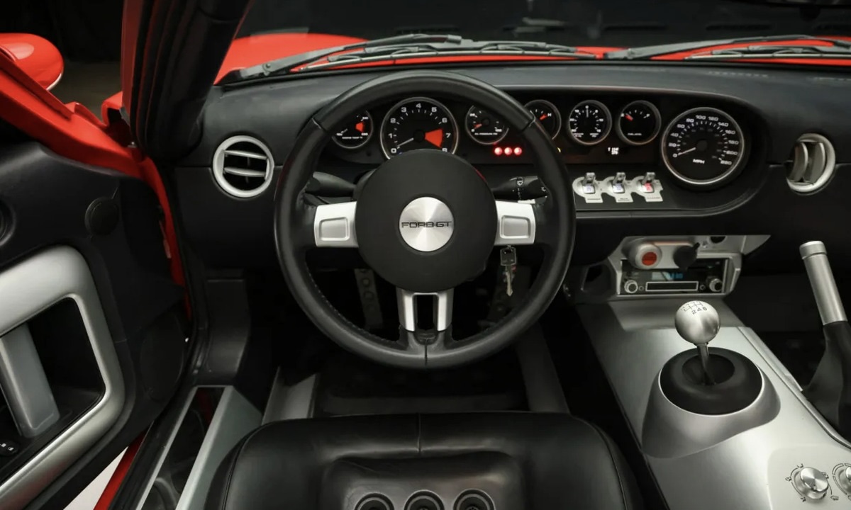 Uno de los datos que más llama la atención es el uso real que ha tenido este Ford GT desde que salió de fábrica. El odómetro indica alrededor de 5.956 kilómetros recorridos, equivalentes a unas 3.701 millas, una cifra extraordinariamente baja para un vehículo con casi dos décadas a sus espaldas.