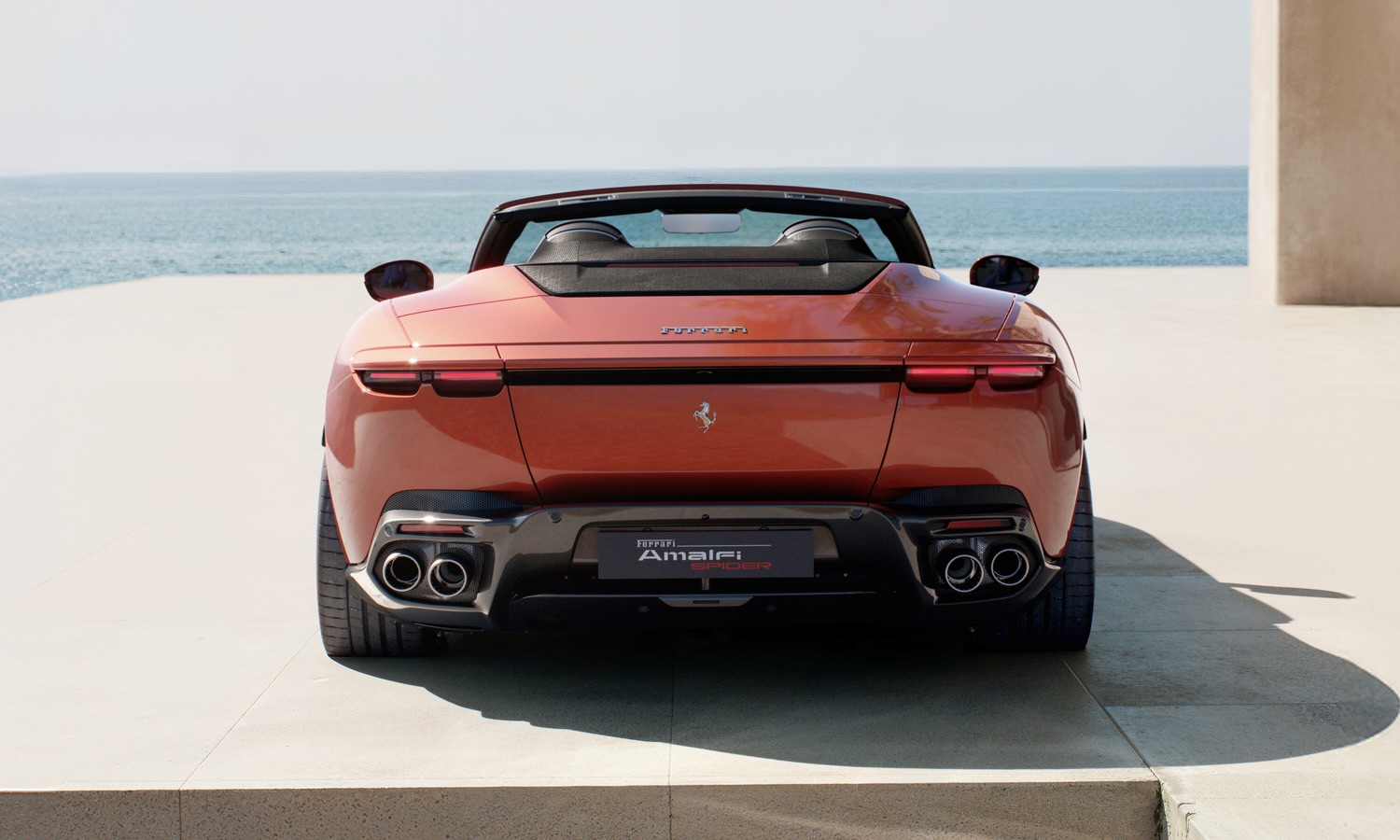 Con el techo bajado, el control del flujo de aire dentro del habitáculo resulta esencial para que el coche sea usable a diario. Por eso, el Amalfi Spider incorpora un deflector de viento integrado en el respaldo de los asientos traseros, que se despliega al pulsar un botón.