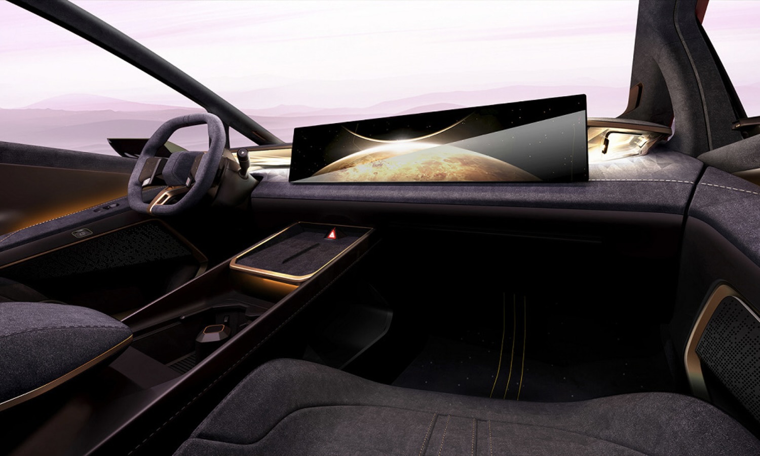 El interior del VENUS apuesta por un ambiente minimalista y silencioso, casi como si se tratara de una galería de diseño. La iluminación ambiental multicapa juega un papel protagonista para crear distintas atmósferas, mientras que los materiales combinan superficies en ante con detalles cromados y toques dorados. Todo se organiza en torno al conductor, con un puesto de mando que pone el foco en la experiencia de uso diaria.