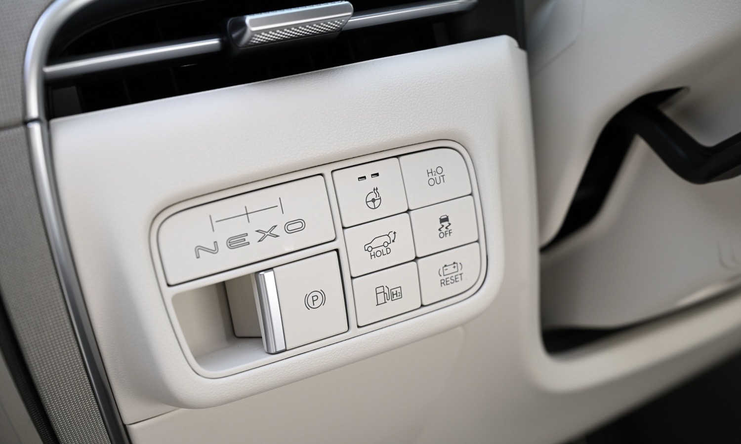 La consola central se ha simplificado de forma notable. Frente a la abundancia de botones del anterior Nexo, ahora se mantienen sólo los mandos físicos esenciales, mientras que el resto de funciones se concentran en la pantalla táctil. El selector de marchas pasa a ser un sistema shift-by-wire electrónico, liberando espacio en la zona central.