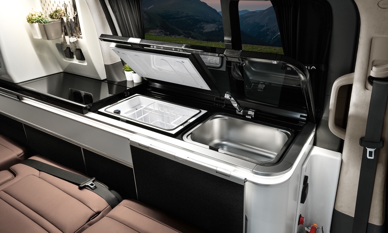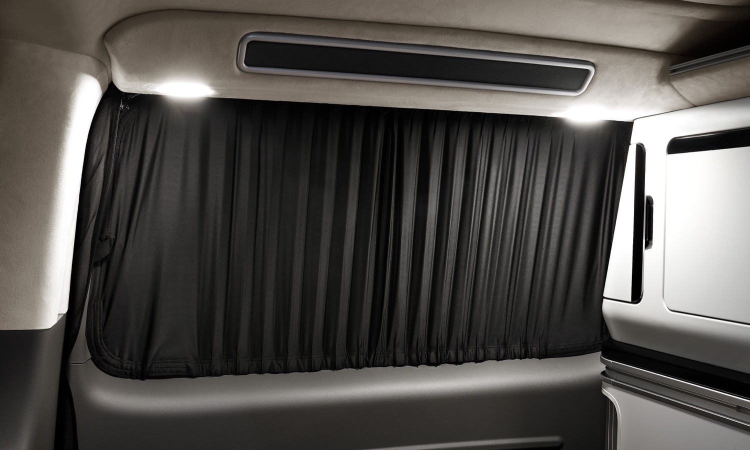 Otro detalle que diferencia al prototipo de una furgoneta camperizada al uso es el uso de cristales inteligentes ajustables electrónicamente en la parte trasera. Mediante un módulo de pantalla táctil se puede regular la transparencia y el sombreado, lo que permite adaptar el nivel de privacidad sin recurrir a cortinas, estores o paneles adicionales.