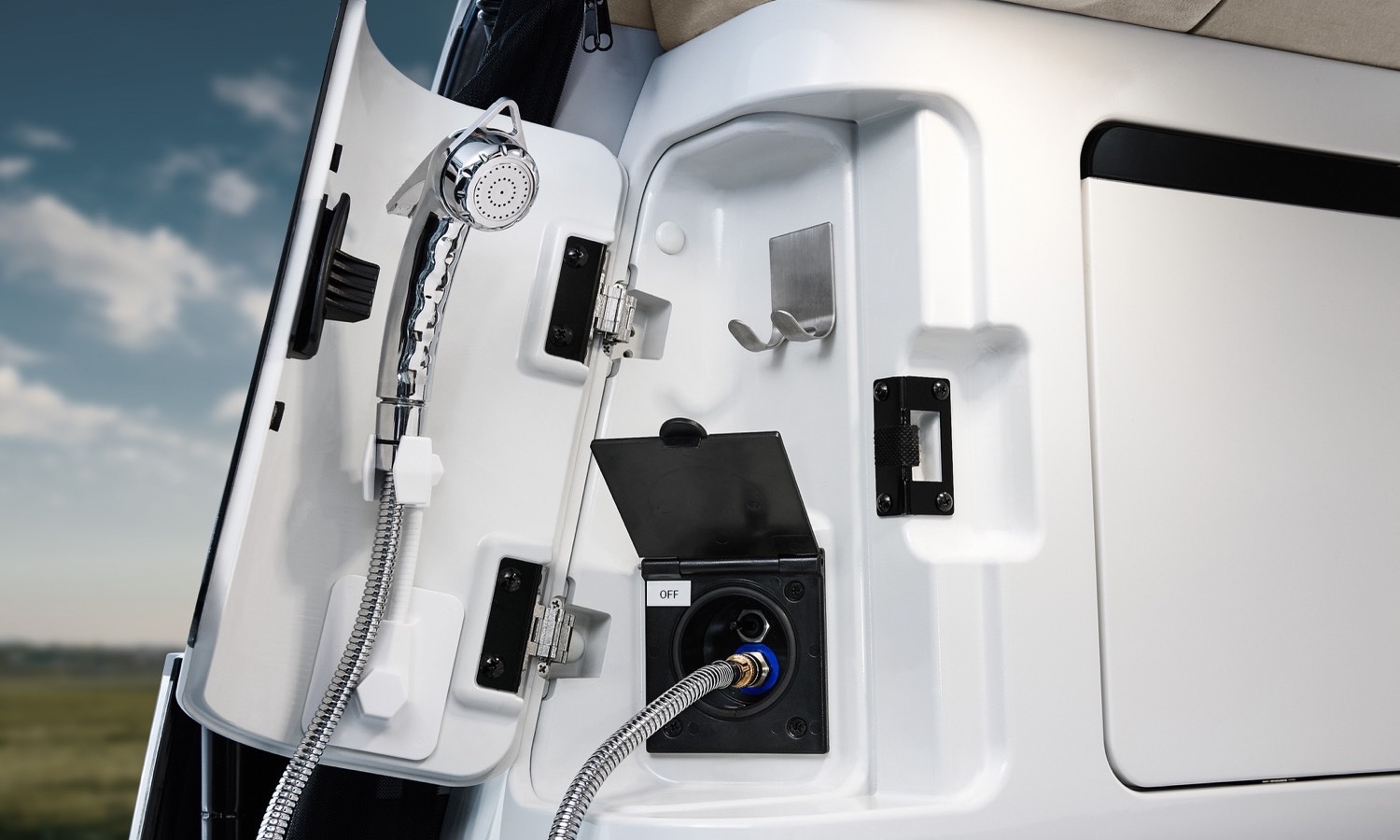 El equipamiento de la zona camper va más allá de la simple cama. El prototipo incluye nevera de 36 litros, ducha exterior, fregadero y toldo, además de la gestión eléctrica apoyada en el panel solar. Según la marca, se ha buscado un equilibrio entre ofrecer lo necesario para pasar varios días fuera de la red y no recargar el interior con muebles fijos que resten flexibilidad en el uso diario.