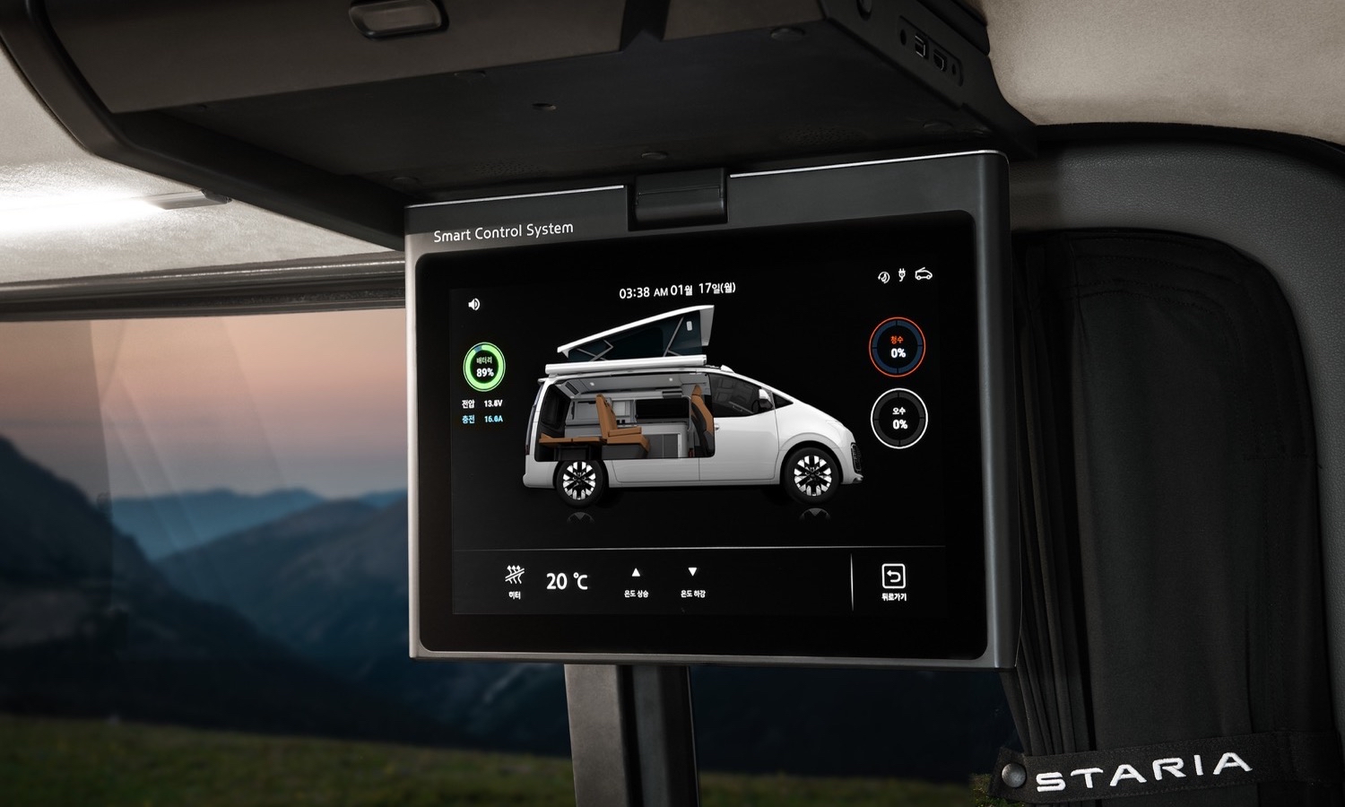 El gran protagonista de este concept es el techo elevable eléctrico, totalmente integrado en la carrocería. No es un añadido improvisado: está diseñado para conservar la aerodinámica del vehículo, reduciendo el ruido del viento y las sacudidas durante la marcha. En ruta mantiene una silueta similar a la de un Staria convencional y, una vez estacionado, basta con pulsar un botón para elevarlo.