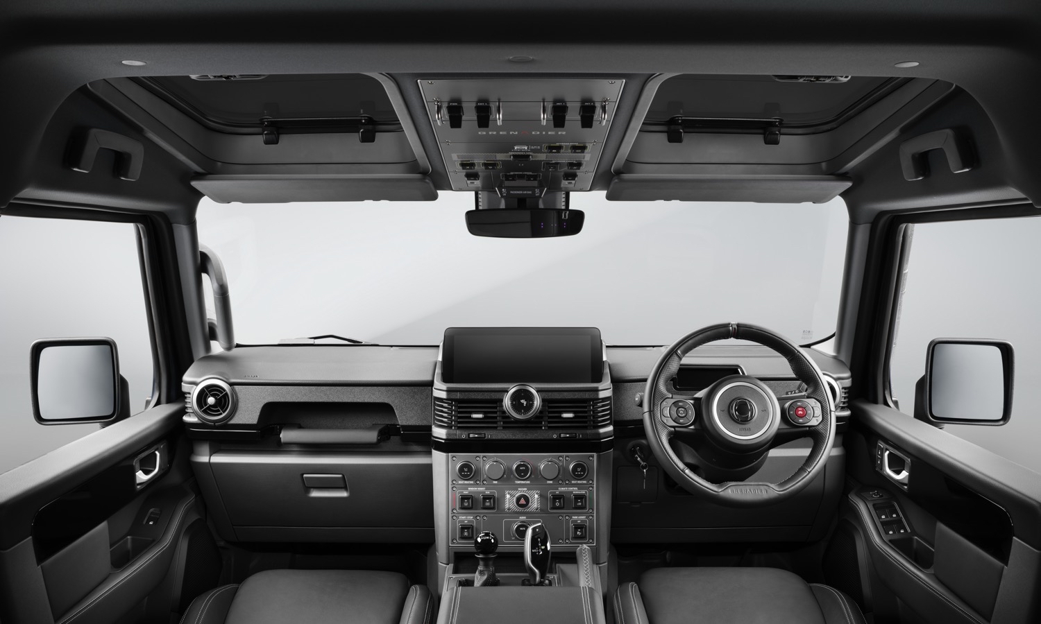 Dentro del Grenadier se mantiene una cabina de enfoque utilitario, diseñada para soportar desgaste y facilitar el uso de los mandos con guantes o en entornos de trabajo. El salpicadero adopta un estilo inspirado en la aviación, con grandes conmutadores y un panel superior donde se agrupan funciones relacionadas con la tracción y los modos off-road.