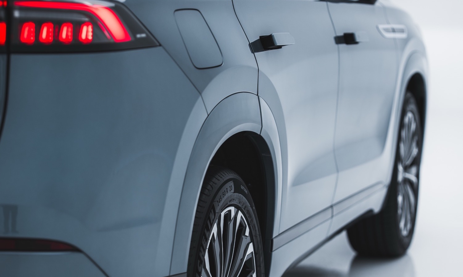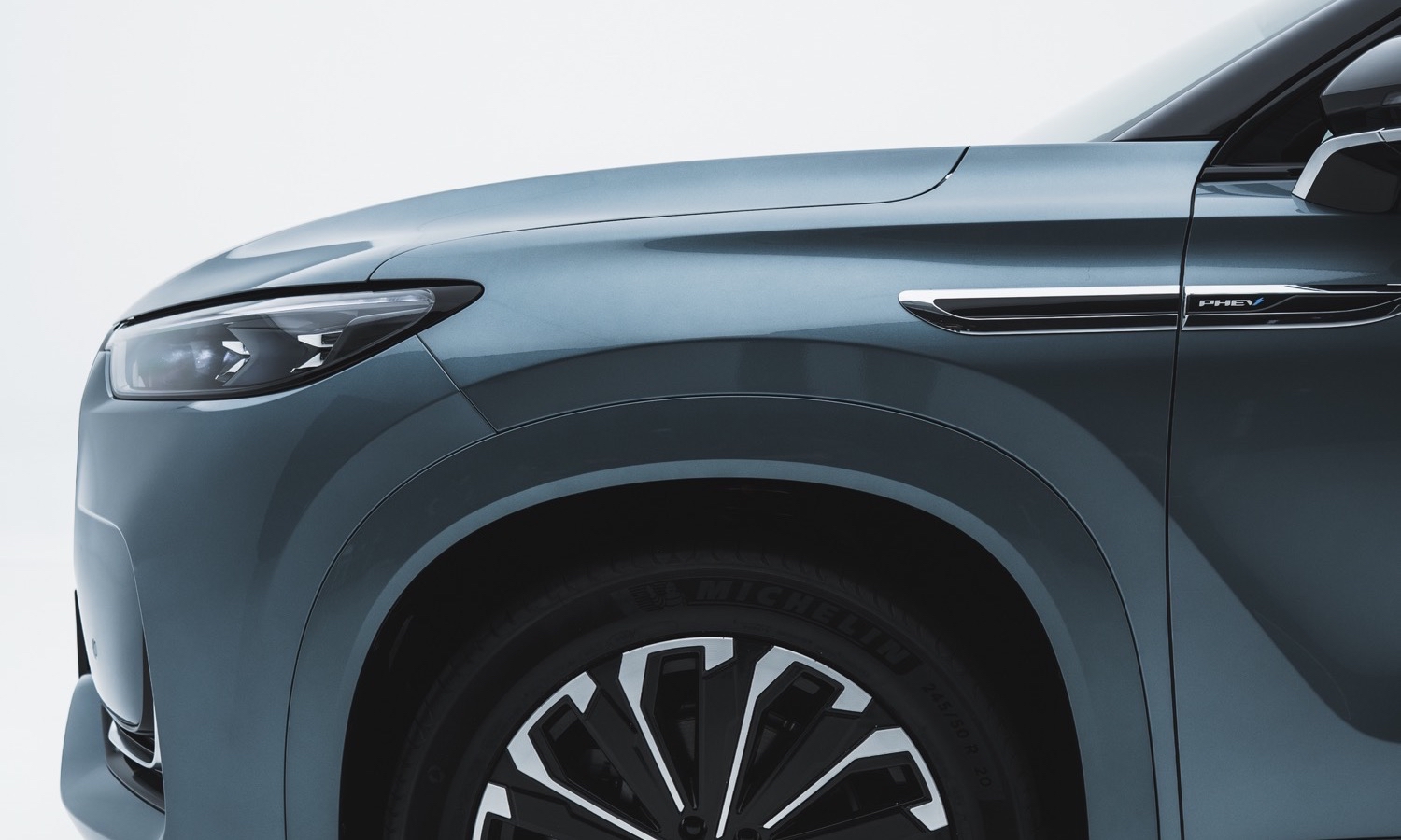 En cuanto a su estética, este coche familiar presenta un diseño exterior robusto que combina elegancia y presencia campera. El frontal está dominado por una parrilla en cascada de efecto tridimensional, flanqueada por avanzados faros full LED. Detalles modernos como los tiradores enrasados eléctricos y las llantas de aleación de 20 pulgadas refuerzan su imagen premium y mejoran la aerodinámica lateral. La firma lumínica trasera, unida por una franja continua, acentúa visualmente la anchura y el aplomo de su carrocería sobre el asfalto.