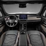 Los paragolpes delantero y trasero tambiƩn han sido revisados, con lƭneas mƔs rectas y defensas mƔs marcadas que refuerzan el carƔcter todocamino. El Ɣngulo de ataque se mantiene en cifras propias de un SUV con aspiraciones fuera del asfalto, especialmente en las variantes de enfoque mƔs aventurero como la Willys.