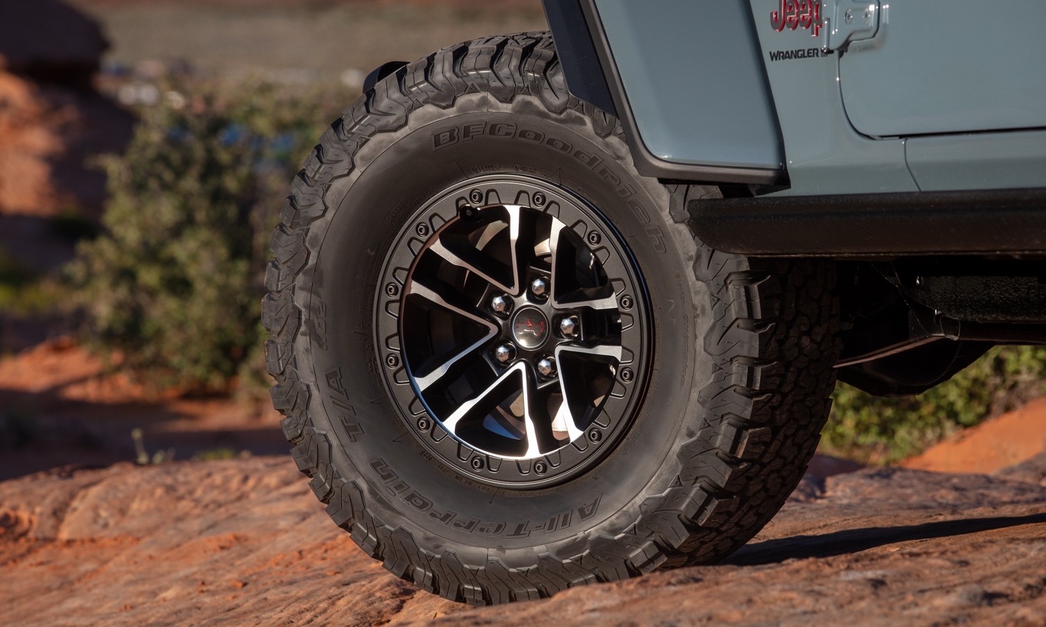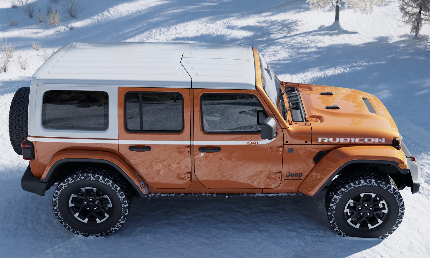 Según el acabado de partida, el Wrangler Whitecap puede añadir guardabarros en el mismo color de la carrocería, acentuando el contraste con el techo y la parrilla. En las versiones Sahara y Rubicon se incluyen unas franjas laterales «1941» en blanco brillante que arrancan en la puerta delantera y se prolongan hacia la parte trasera, recordando el año en que comenzó la historia de Jeep. Por su parte, el Rubicon incorpora además un adhesivo específico en el capó, también en blanco, que remarca el carácter de esta variante.