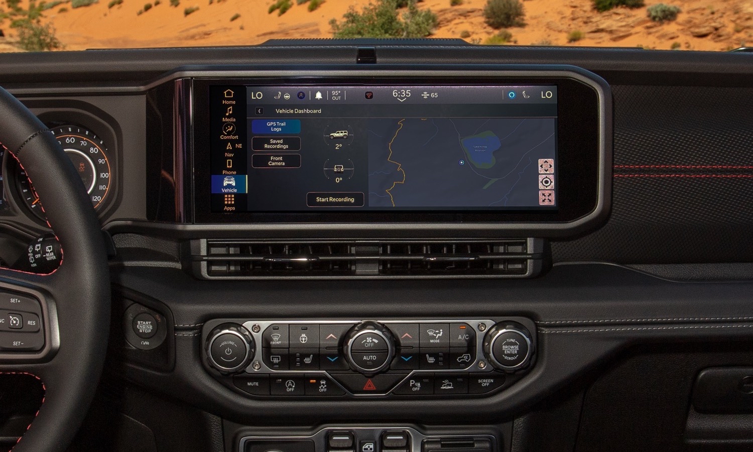 En el habitáculo, el Wrangler Whitecap mantiene el esquema de interior propio de las versiones Sahara y Rubicon, con un enfoque que combina una presentación robusta con un nivel de confort razonable para el día a día. Los materiales y la ergonomía siguen la línea de la generación actual, con mandos grandes pensados para poder utilizarse incluso con guantes y una disposición funcional de los controles del sistema de tracción y de los bloqueos.