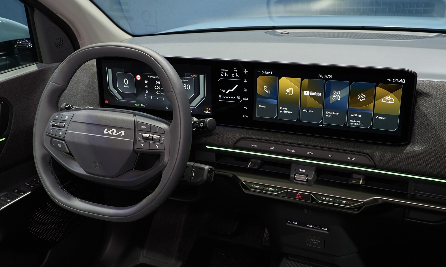 En las versiones más equipadas, el sistema de infoentretenimiento utiliza la plataforma ccNC completa, con conectividad avanzada, integración con la app de Kia, actualización de software y mapas mediante OTA y un funcionamiento similar al de modelos superiores de la marca. En los acabados de acceso, se propone una variante ccNC Lite, que mantiene la misma base visual y las tres pantallas, pero recorta algunas funciones, como determinados servicios de navegación o parte de las actualizaciones remotas, con el objetivo de contener el precio.