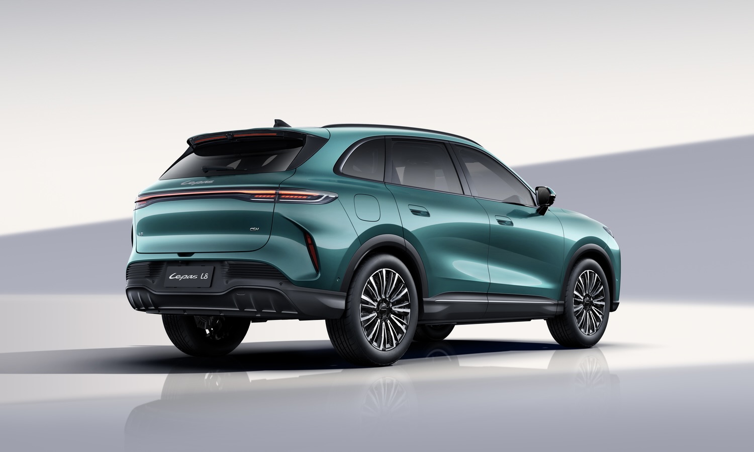 La filosofía de diseño de la marca, conocida como Leopard Aesthetics, apuesta por líneas tensas y proporciones equilibradas que evocan agilidad. En el Lepas L8 se traducen en una silueta fluida, con faros delanteros de inspiración vertical que recuerdan a una mirada centrada y firma diurna en forma de “V”, dos rasgos que definen su ADN visual. La zaga luce una tira luminosa continua que ensancha al vehículo y da una lectura limpia del ancho del coche.