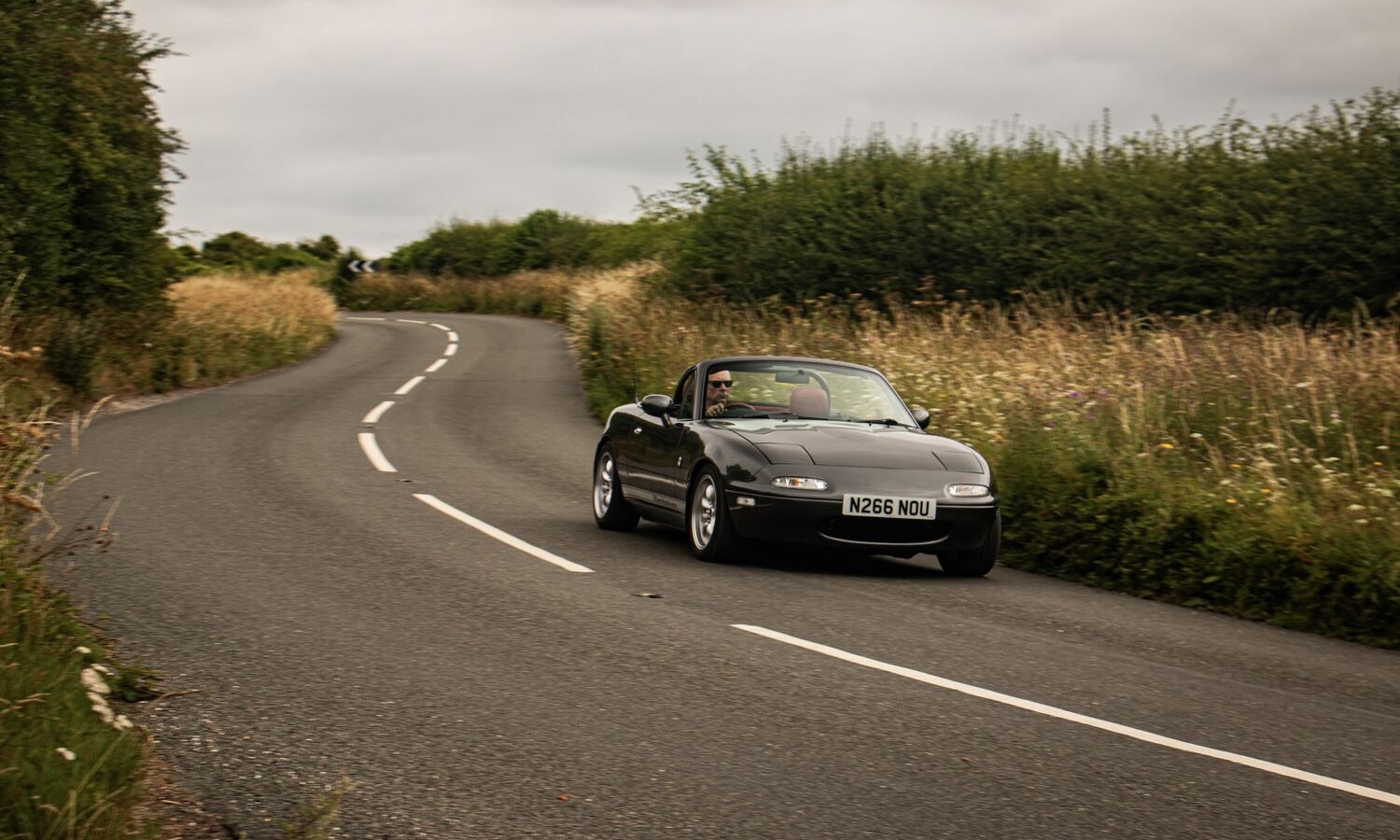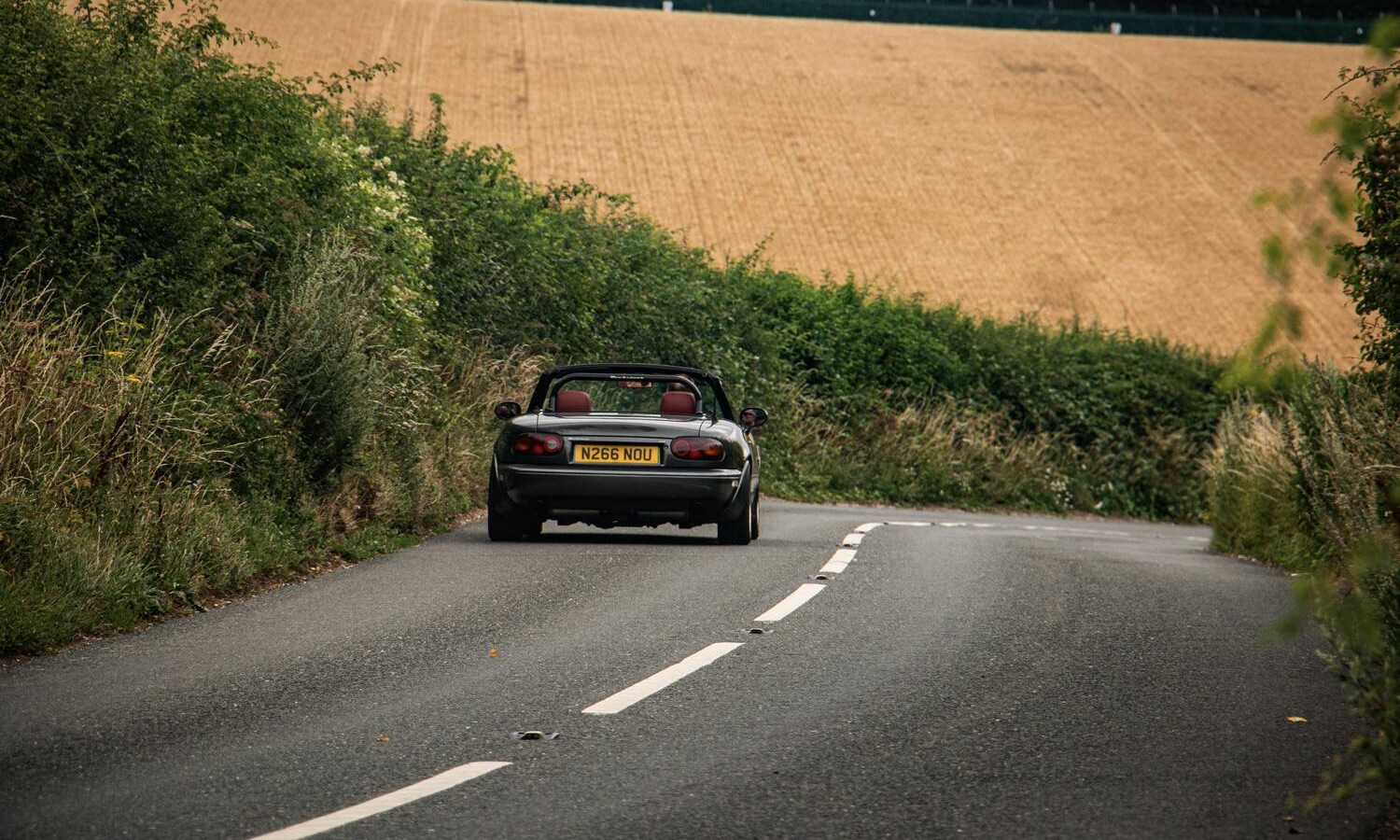 Es el último día del verano y la luz empieza a ceder terreno a la oscuridad, pero el sol sigue clavado en el cielo como un resplandor dorado sobre el asfalto. En medio de ese cambio de estación, un Mazda MX-5 con la capota plegada y una carretera secundaria retorcida por delante recuerda por qué seguir conduciendo por placer todavía tiene sentido. Este no es un descapotable cualquiera: bajo su carrocería discreta esconde un corazón muy distinto al original.
