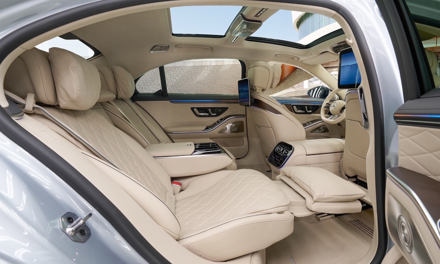 Uno de los cambios más visibles respecto a un Clase S convencional son los tiradores de las puertas. En lugar de manillas escamoteables enrasadas con la carrocería, el Guard recurre a manetas mecánicas tradicionales. Este detalle, que puede parecer menor, es crucial: en una situación de emergencia, los equipos de rescate no pueden depender de mecanismos eléctricos que podrían haber quedado dañados, por lo que se opta por una solución más simple, robusta y rápida de accionar.