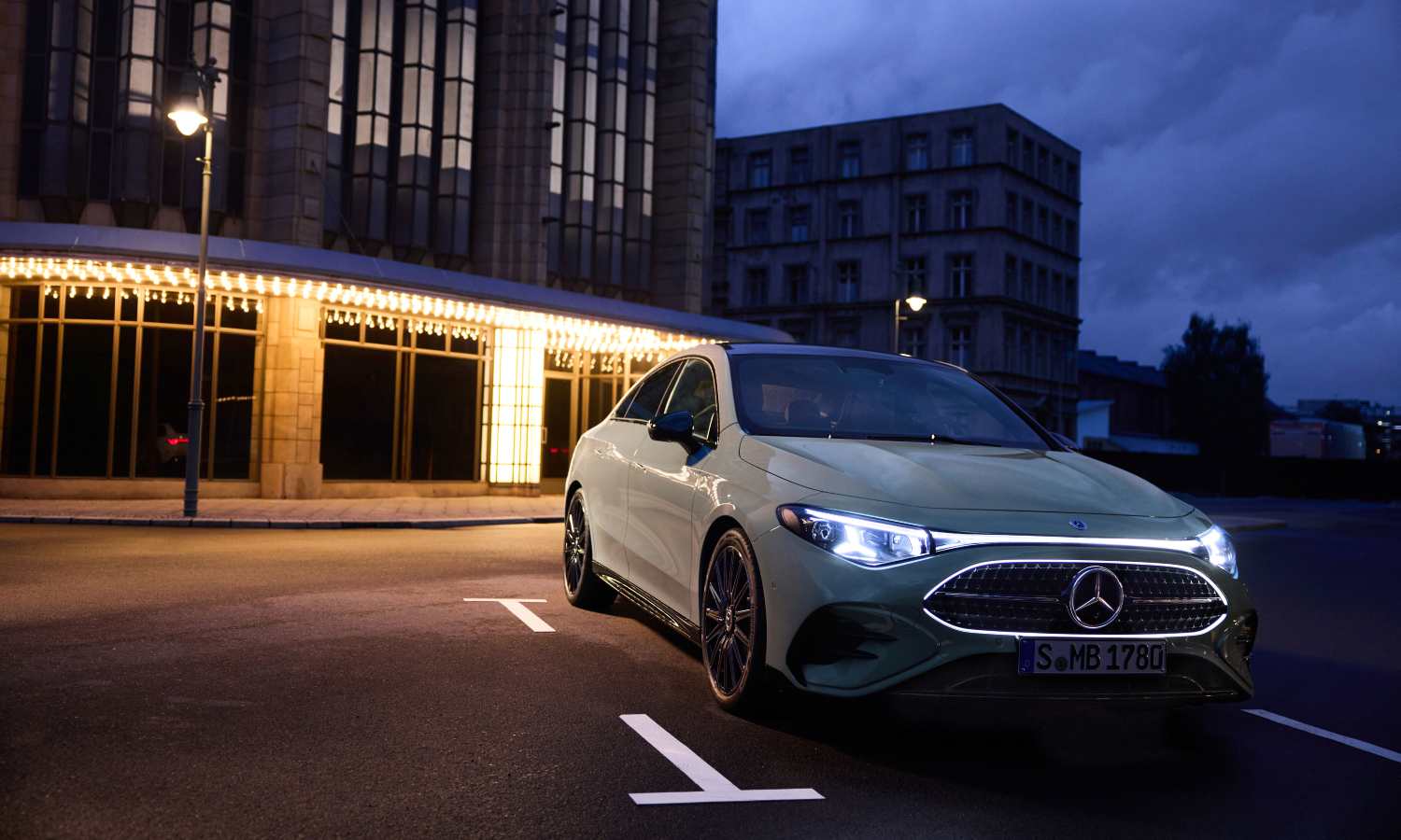 Por fuera, el CLA híbrido adopta el lenguaje del CLA eléctrico, con faros de firma lumínica en forma de estrella y una zaga muy limpia. La diferencia más clara está en la parrilla con patrón de estrellas cromadas, cuyo marco puede estar iluminado, y en la presencia del tubo de escape en el híbrido frente a la trasera carenada del BEV.
