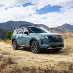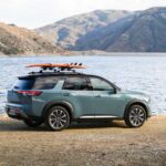 El Pathfinder adopta un lenguaje más seguro de sí mismo con una parrilla rediseñada, logos satinados y la incorporación del color Baltic Teal. Forma parte de su última evolución. En las versiones SL y Platinum, las barras de techo lucen un acabado negro y se suman las llantas de aleación de 20 pulgadas para redondear la estampa.