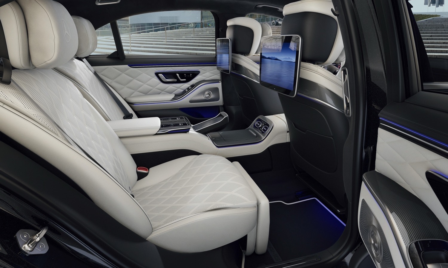 La zona trasera sigue siendo el auténtico territorio del Clase S. En las versiones con configuración First-Class, las plazas posteriores se convierten prÔcticamente en una sala de trabajo y descanso sobre ruedas. Se pueden montar mesas plegables, pantallas de 13,1 pulgadas en los respaldos delanteros, mandos MBUX desmontables y funciones de videoconferencia integrada, algo especialmente orientado a clientes corporativos y a quienes usan la berlina con chófer.