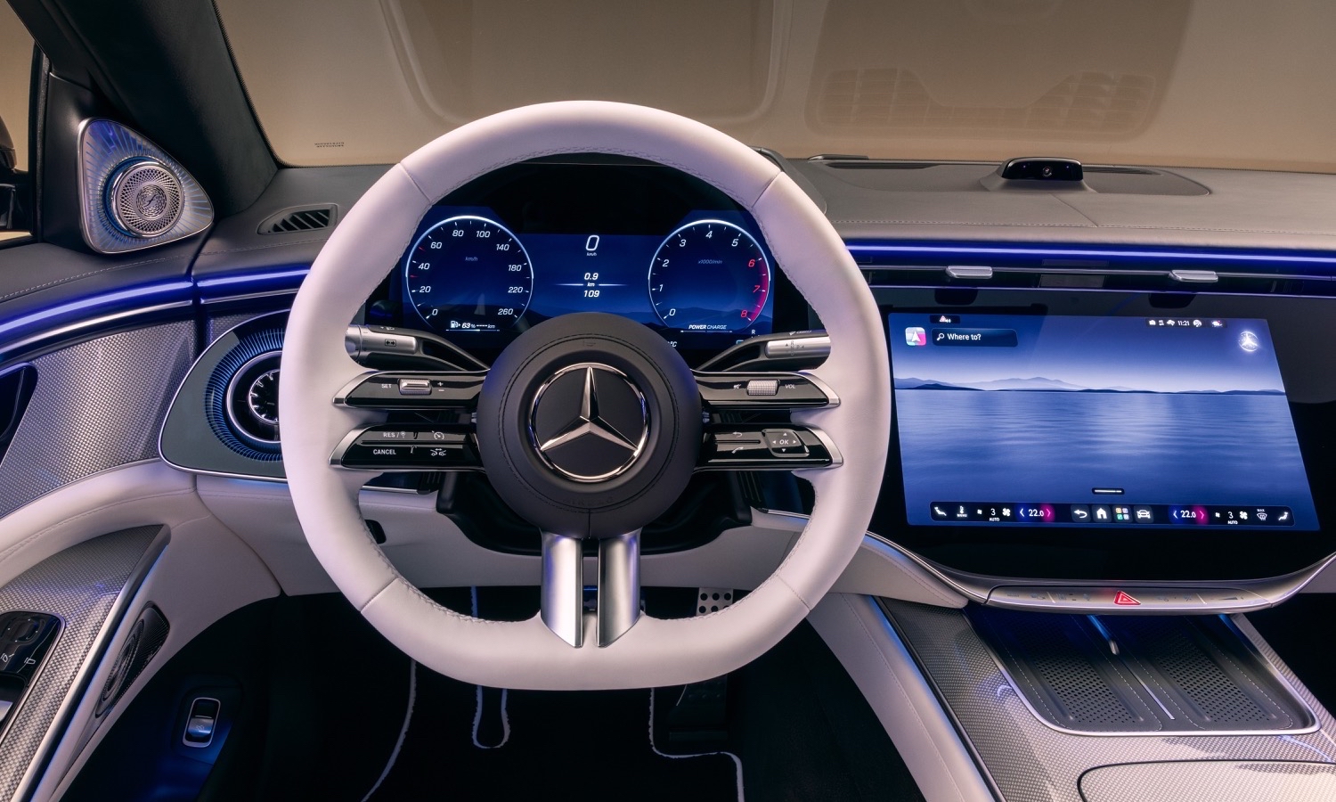 Como opción, se ofrece el sistema E-Active Body Control, que se sitĆŗa en lo mĆ”s alto del mercado en cuanto a tecnologĆa de suspensión. Este sistema puede inclinar la carrocerĆa hacia el interior de la curva para reducir el balanceo percibido por los ocupantes y utiliza cĆ”maras y datos previos de la vĆa para Ā«leerĀ» los baches que hay por delante y adaptar la respuesta de cada rueda en tiempo real. El resultado es un comportamiento que, en la prĆ”ctica, se acerca a la idea de una āalfombra voladoraā sobre el asfalto.