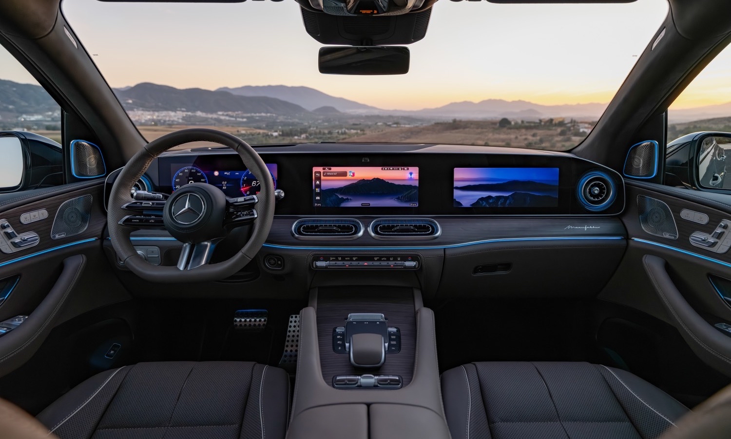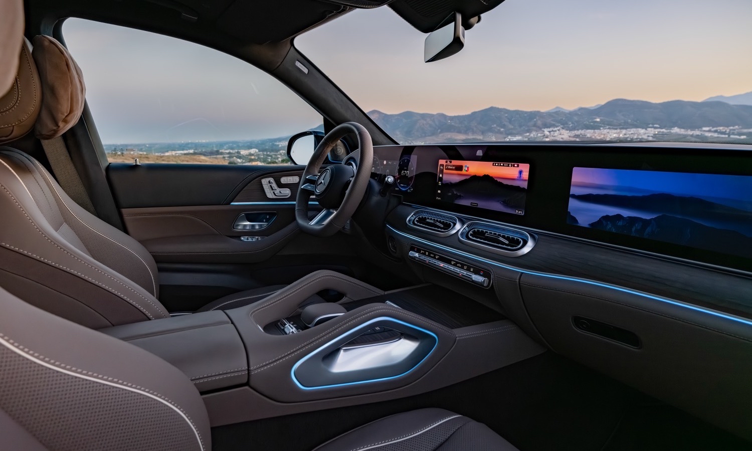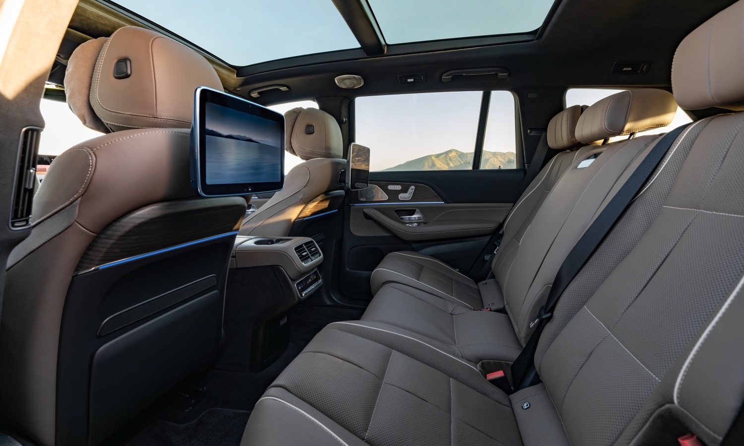 El diseño se remata con materiales nobles que refuerzan la calidad premium del habitáculo. Tapicerías de piel en tonos únicos como el Beech Brown se combinan con molduras de madera de poro abierto y aluminio cepillado. Un techo panorámico de un metro cuadrado inunda de luz la cabina, mientras la iluminación ambiental crea atmósferas personalizables mediante colores y animaciones. Esta atmósfera señorial, unida a un aislamiento acústico optimizado, consolida al GLS como la referencia absoluta en elegancia interior, ofreciendo un entorno relajante y sofisticado que satisface todos los sentidos durante la conducción.