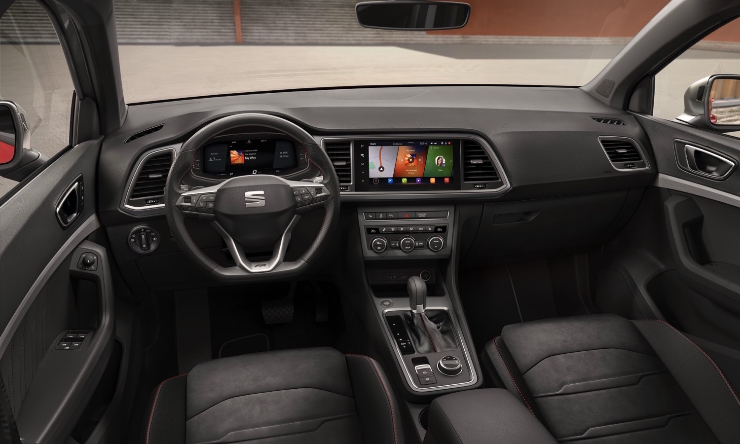 En conectividad y confort, la dotación estándar contempla faros Full LED, sistema de navegación con pantalla de 9,2 pulgadas, Digital Cockpit de 10,25 pulgadas, Seat Connect, Full Link inalámbrico, cargador por inducción, climatizador bizona, Park Assist, portón trasero eléctrico con Pedal Virtual y acceso y arranque sin llave Kessy. Con este listado, el Ateca FR se acerca bastante a lo que muchos entenderÃan por un «full equip» de fábrica.