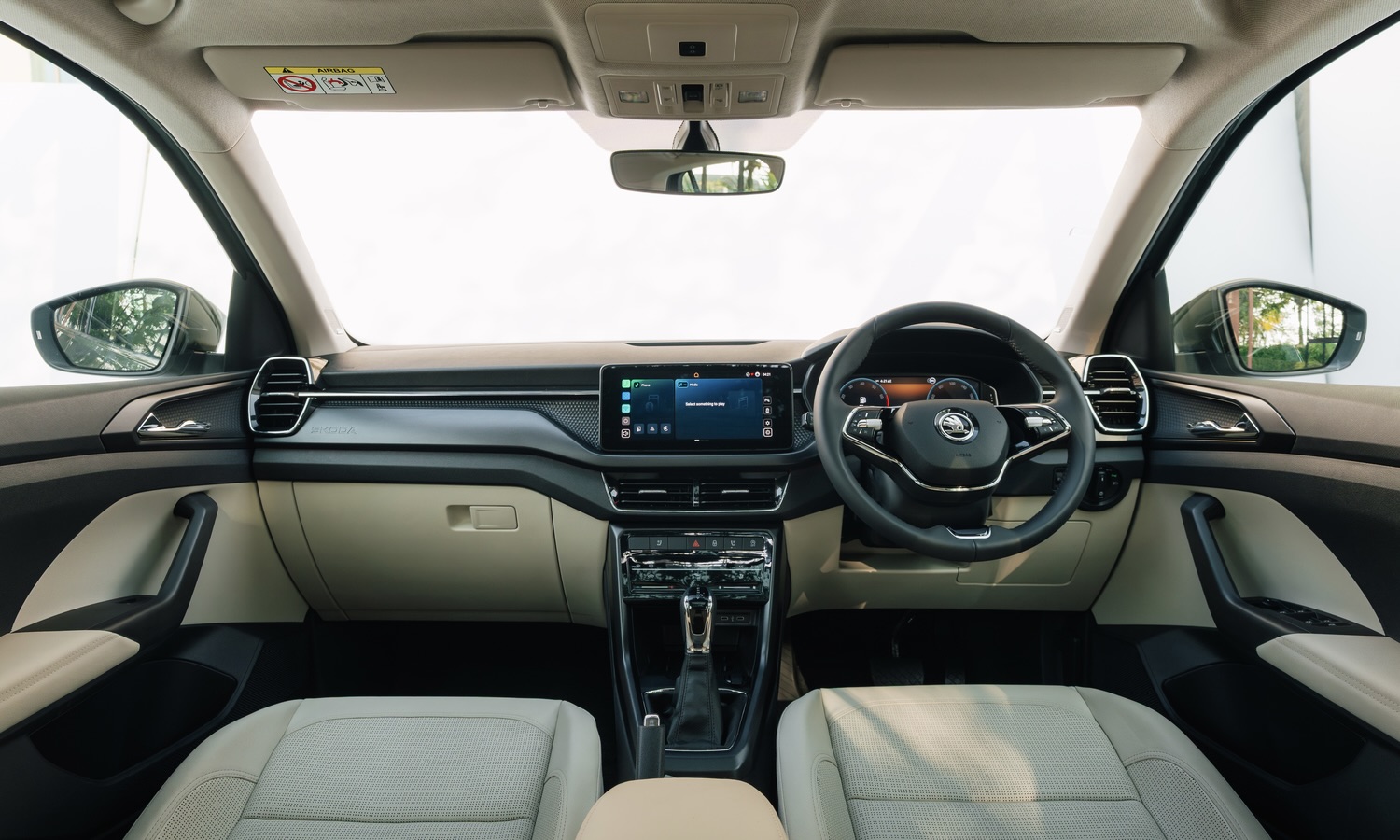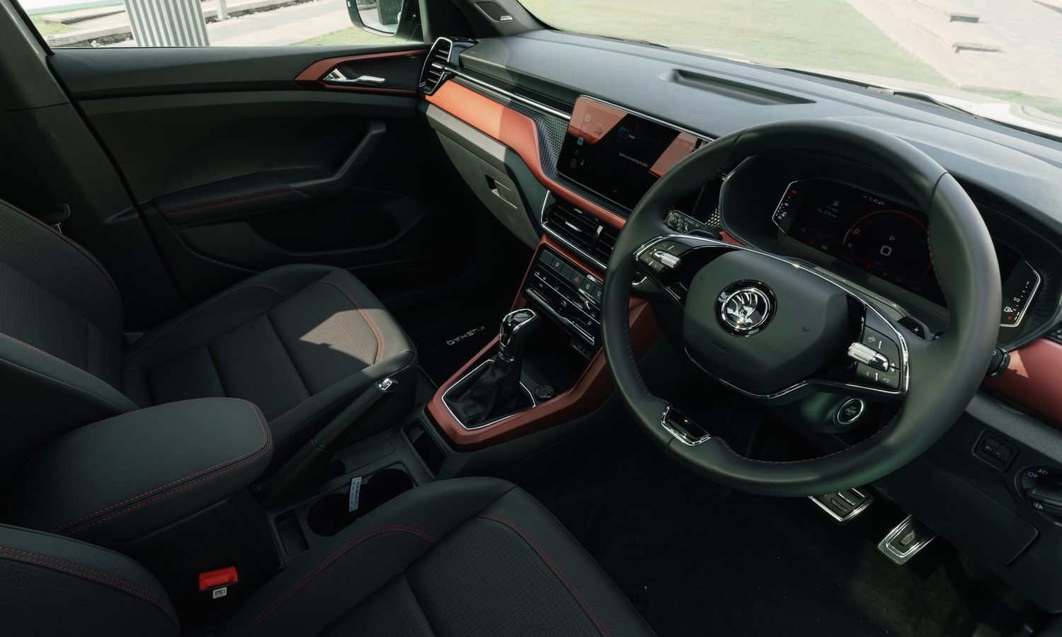 Se añade también una iluminación ambiental bicolor que permite personalizar el ambiente del interior y (en función de la versión) un techo panorámico que incrementa la sensación de espacio y luminosidad. Estos elementos, habituales en el mercado europeo, refuerzan el posicionamiento del Kushaq como un SUV que ya no se conforma con lo básico.