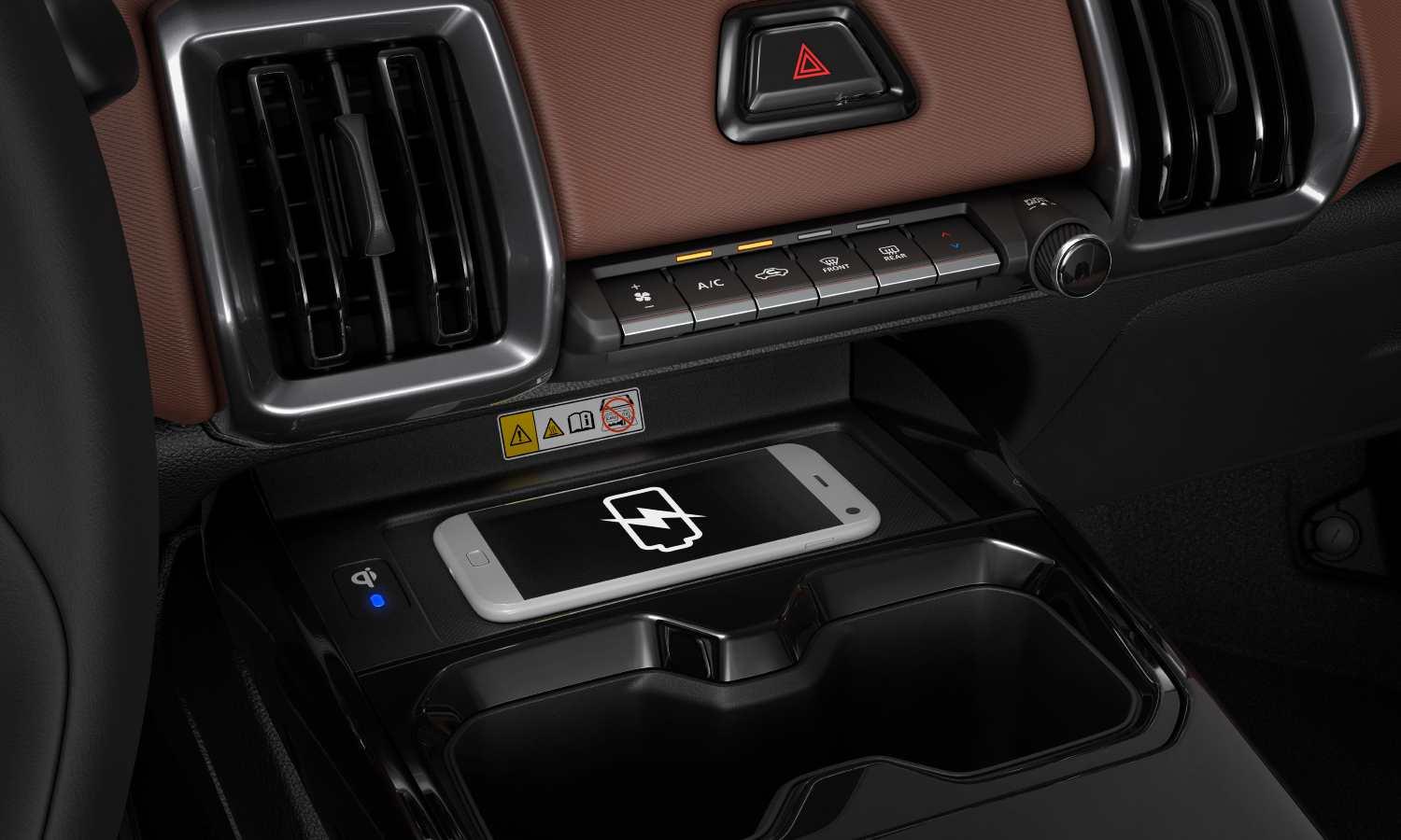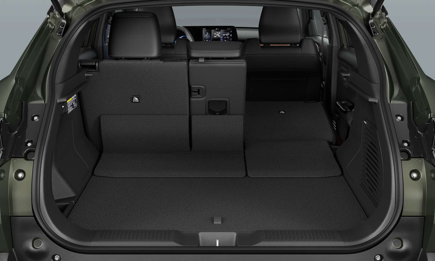 Bajo el piso hay un doble fondo con un cajón de poliestireno donde es posible guardar el kit antipinchazos y pequeños objetos. El hueco para los cables no es especialmente generoso, por lo que muchos propietarios acabarán llevándolos en bolsas aparte. Como detalle práctico, la marca ofrece reposabrazos trasero con portabebidas y apertura para esquís, un guiño claro a quienes frecuentan la montaña.