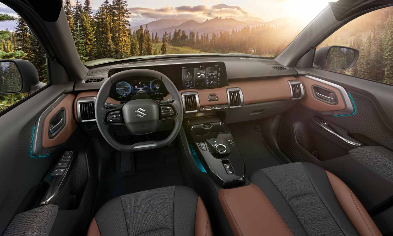 Al abrir la puerta, lo primero que llama la atención es un salpicadero de líneas horizontales y aspecto sólido. El e Vitara combina recursos modernos con soluciones prácticas: hay una doble pantalla digital, pero también abundan los mandos físicos para las funciones del día a día.