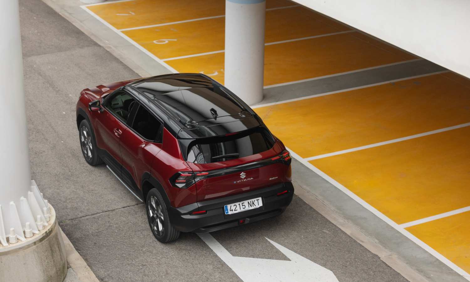 En curva sobre asfalto, el e Vitara dispone de un control activo en curvas que frena ligeramente la rueda interior antes de que empiece a deslizar, ayudando a contener el subviraje y a mantener la trayectoria cuando se acelera con ganas a la salida de la curva.