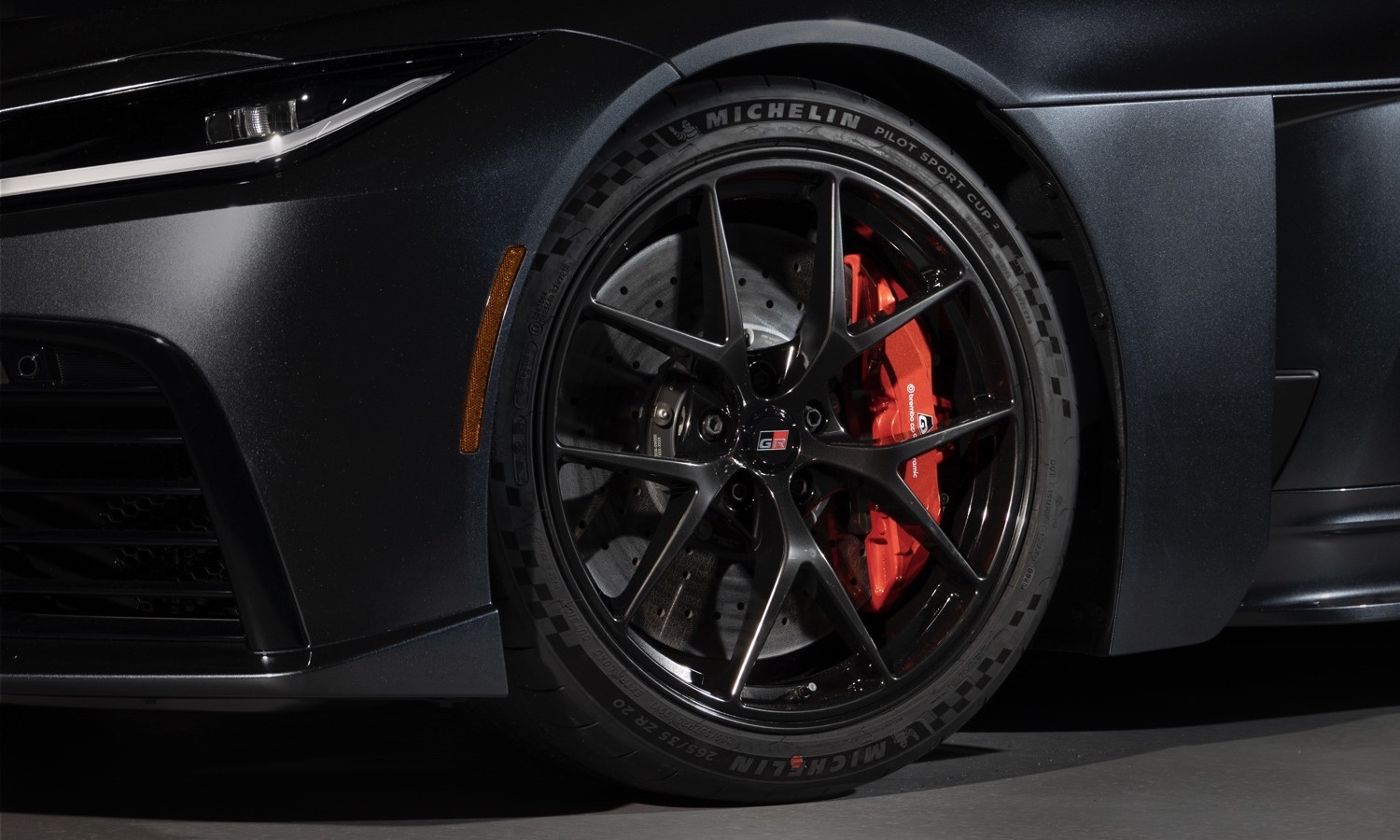 El equipo de frenos recurre a discos carbocerámicos Brembo en los dos ejes, orientados a soportar frenadas repetidas sin pérdida de eficacia. Las llantas de 20 pulgadas montan neumáticos Michelin Pilot Sport Cup 2 en medidas 265/35 ZR20 delante y 325/30 ZR20 detrás, desarrollados específicamente para el modelo. Además, el sistema de control de estabilidad permite regular distintos niveles de asistencia tanto en aceleración como en frenada, una solución heredada de la experiencia de Toyota Gazoo Racing en pruebas como las 24 Horas de Nürburgring.