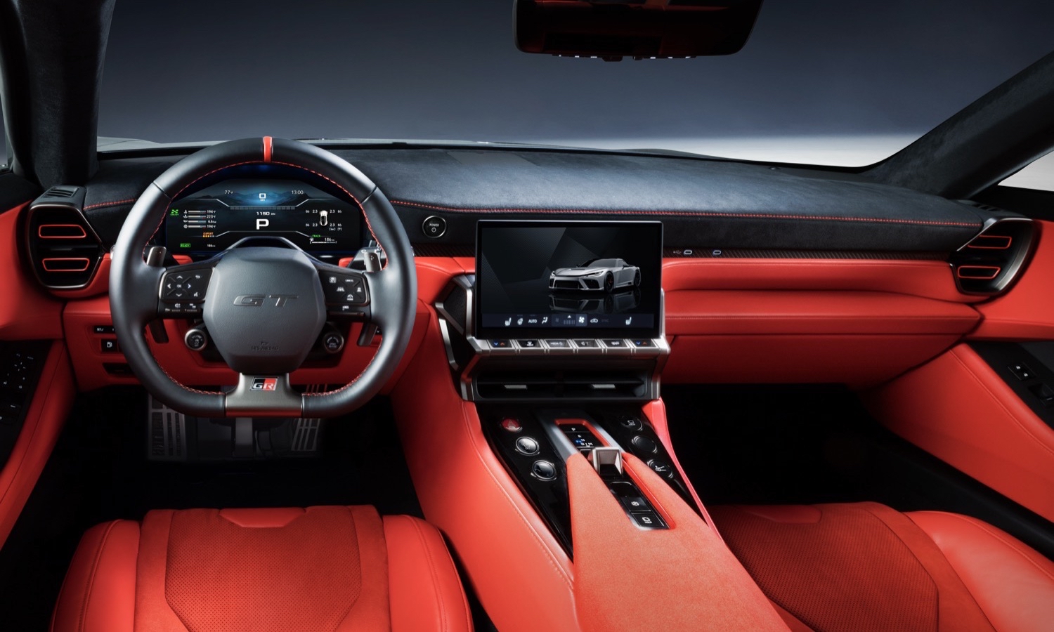 A pesar de su enfoque radical, el GR GT no renuncia a un cierto refinamiento. El habitáculo combina tonos negros con detalles en rojo intenso, en una atmósfera que recuerda a la del Lexus LFA más que a los modelos convencionales de Toyota. De hecho, en el prototipo mostrado no aparecen logotipos Toyota en el interior, reforzando la idea de que se trata de un producto Gazoo Racing con identidad propia y un posicionamiento de calidad muy elevado.
