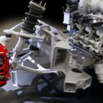 Uno de los aspectos más novedosos del nuevo Toyota GR GT es que se trata del primer modelo de la marca con un chasis completamente fabricado en aluminio. No se trata solo de subestructuras aisladas, sino de una arquitectura tipo space-frame íntegramente en este material, reforzada con piezas de aluminio forjado en las zonas de mayor carga y un uso intensivo de perfiles extruidos para optimizar la rigidez torsional.